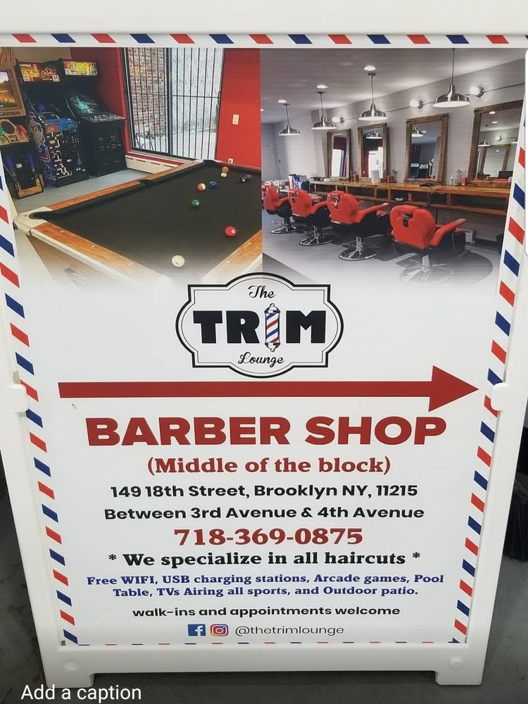 The TRIM Lounge is a contemporary barber shop situated at 149 18th St, FL 1 in Brooklyn's Sunset Park neighborhood. This establishment caters to clients looking for stylish haircuts and grooming services.
